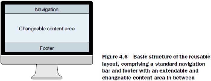 “This framework for a layout is pretty simple, but it suits our needs. It will give a consistent look and feel, while allowing for all types of content layouts to go in the middle.” (p. 90)