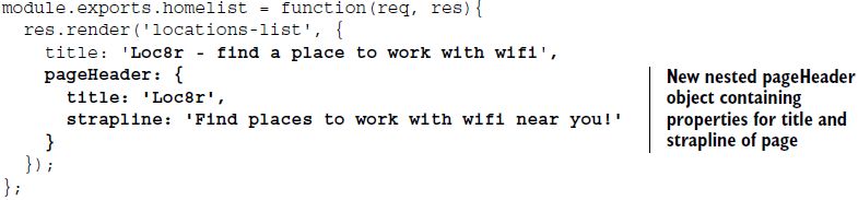 - “update the Jade files to contain variables in place of content, and [define] the content as variables in the controllers”