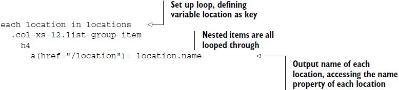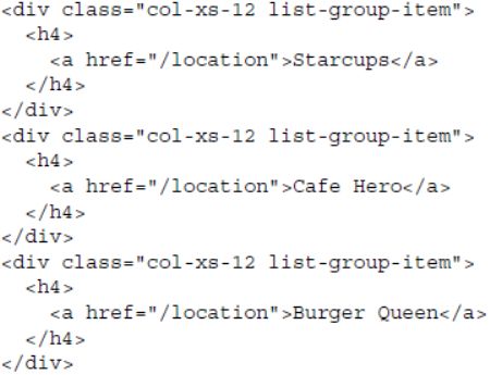 - given the locations array defined in the homelist function above, this Jade code generates the following HTML