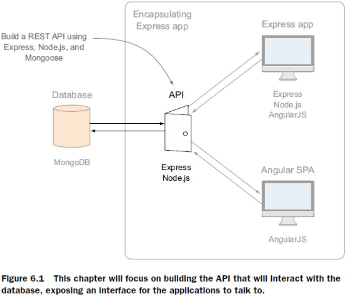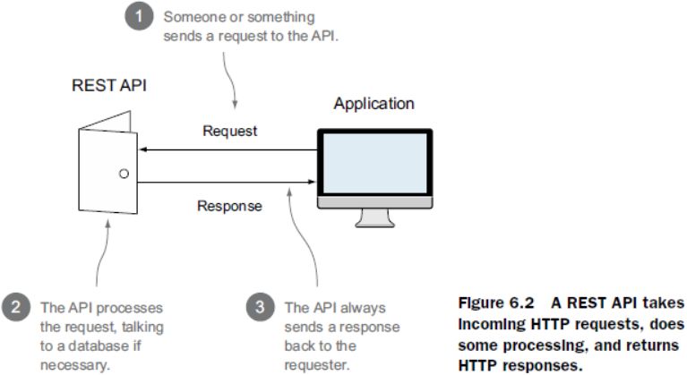 - the REST API “takes an incoming HTTP request, does some processing, and always sends back an HTTP response” (p. 162)